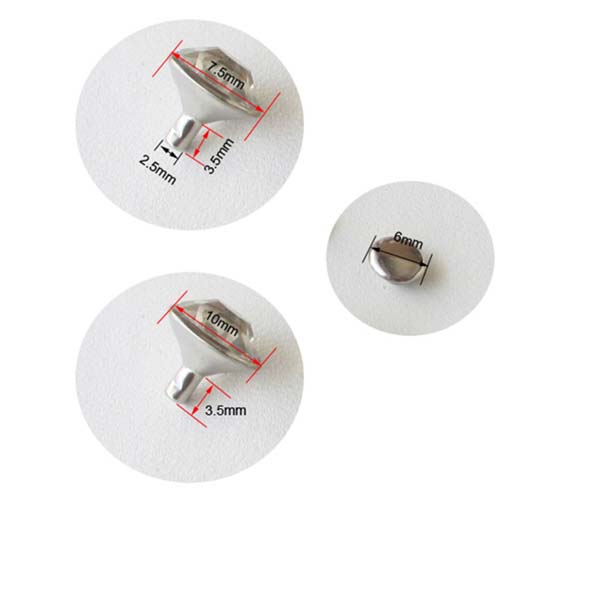 We can produce top quality brass/alloy/aluminum/stainless steel spikes. We can make to custom orders with a sample photo or designing draft. We are capable of making various tree spike, cone spike, hexagon spike, claw spike, bullet spike, pyramid stud, round stud, and rivets, for all kinds of rock and punk fashion garments and jewelries, especially for studded belts, bracelets, fashion bags and shoes, leather jackets, vests, leather pants, skirts and shoes.