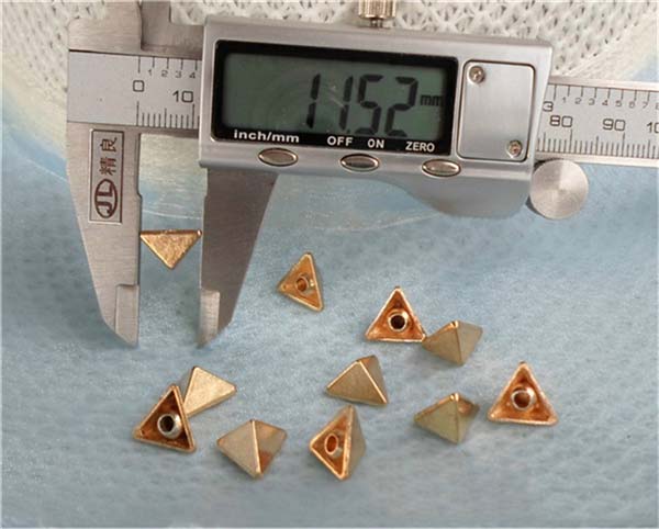 We can produce top quality brass/alloy/aluminum/stainless steel spikes. We can make to custom orders with a sample photo or designing draft. We are capable of making various tree spike, cone spike, hexagon spike, claw spike, bullet spike, pyramid stud, round stud, and rivets, for all kinds of rock and punk fashion garments and jewelries, especially for studded belts, bracelets, fashion bags and shoes, leather jackets, vests, leather pants, skirts and shoes.