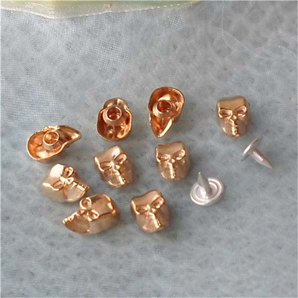We can produce top quality brass/alloy/aluminum/stainless steel spikes. We can make to custom orders with a sample photo or designing draft. We are capable of making various tree spike, cone spike, hexagon spike, claw spike, bullet spike, pyramid stud, round stud, and rivets, for all kinds of rock and punk fashion garments and jewelries, especially for studded belts, bracelets, fashion bags and shoes, leather jackets, vests, leather pants, skirts and shoes.