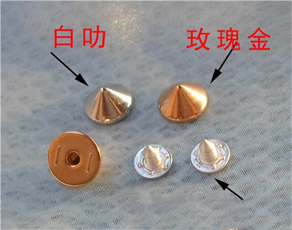 We can produce top quality brass/alloy/aluminum/stainless steel spikes. We can make to custom orders with a sample photo or designing draft. We are capable of making various tree spike, cone spike, hexagon spike, claw spike, bullet spike, pyramid stud, round stud, and rivets, for all kinds of rock and punk fashion garments and jewelries, especially for studded belts, bracelets, fashion bags and shoes, leather jackets, vests, leather pants, skirts and shoes.