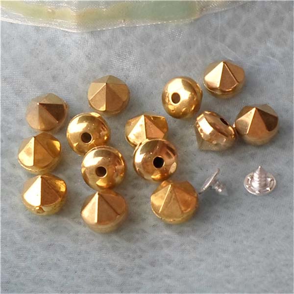 We can produce top quality brass/alloy/aluminum/stainless steel spikes. We can make to custom orders with a sample photo or designing draft. We are capable of making various tree spike, cone spike, hexagon spike, claw spike, bullet spike, pyramid stud, round stud, and rivets, for all kinds of rock and punk fashion garments and jewelries, especially for studded belts, bracelets, fashion bags and shoes, leather jackets, vests, leather pants, skirts and shoes.