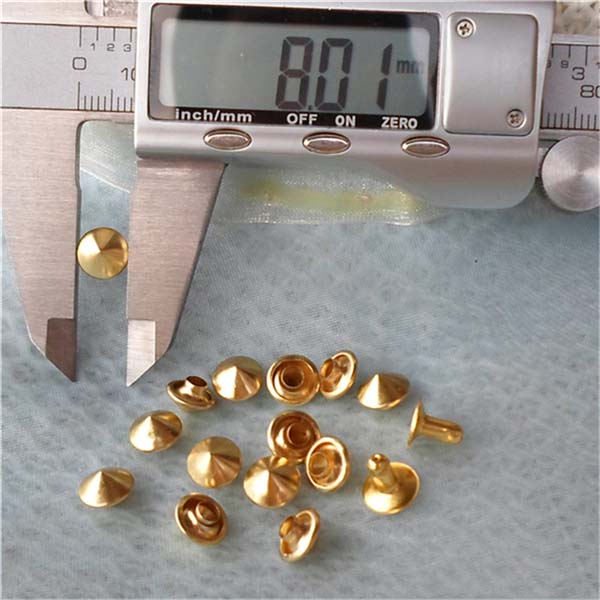 We can produce top quality brass/alloy/aluminum/stainless steel spikes. We can make to custom orders with a sample photo or designing draft. We are capable of making various tree spike, cone spike, hexagon spike, claw spike, bullet spike, pyramid stud, round stud, and rivets, for all kinds of rock and punk fashion garments and jewelries, especially for studded belts, bracelets, fashion bags and shoes, leather jackets, vests, leather pants, skirts and shoes.