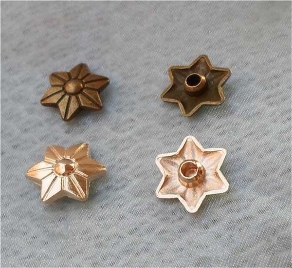 We can produce top quality brass/alloy/aluminum/stainless steel spikes. We can make to custom orders with a sample photo or designing draft. We are capable of making various tree spike, cone spike, hexagon spike, claw spike, bullet spike, pyramid stud, round stud, and rivets, for all kinds of rock and punk fashion garments and jewelries, especially for studded belts, bracelets, fashion bags and shoes, leather jackets, vests, leather pants, skirts and shoes.