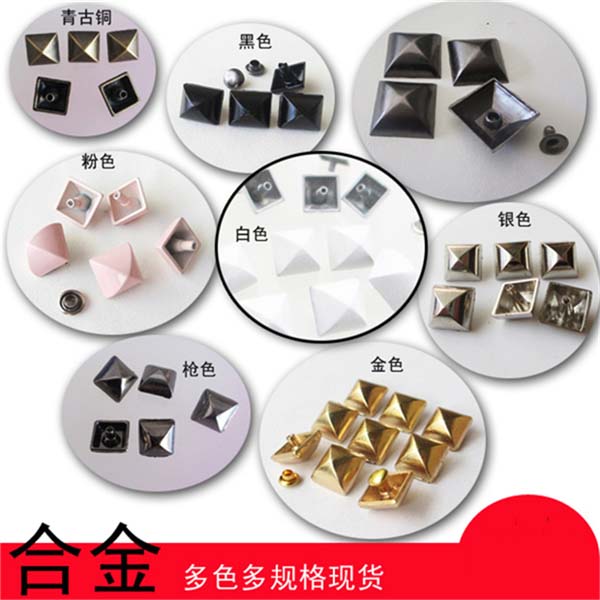 You can get various color spikes,studs,rivets and glow in dark spikes,studs,rivets ; plating: silver, gold, brass, antique brass, gun metal black, matte black, white, red, pink, purple, blue, green, fluorescent green/yellow/orange,glow in dark green/yellow/white/pink/orange/blue, etc.