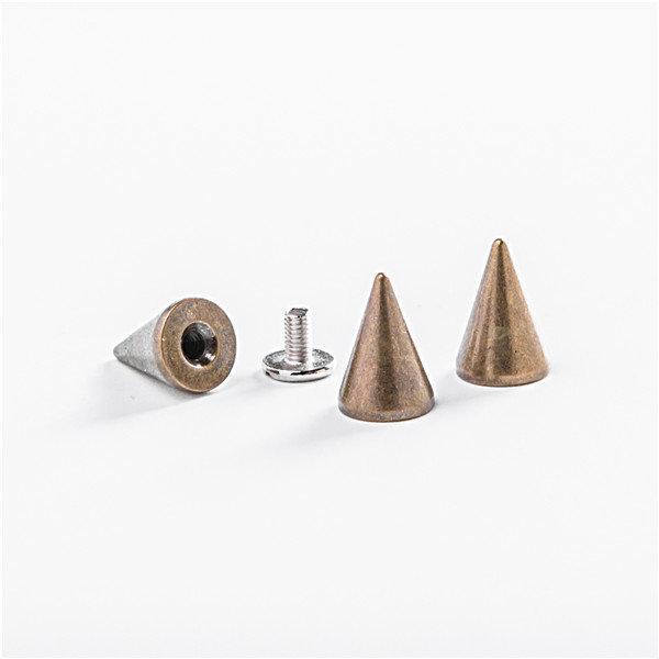 Size 0.394 inch diam and 551 inch height Shaped like a cone.Comes with a screw for application onto punk clothing,dog collar,meubles,auto-motorcycle embellishments or anything