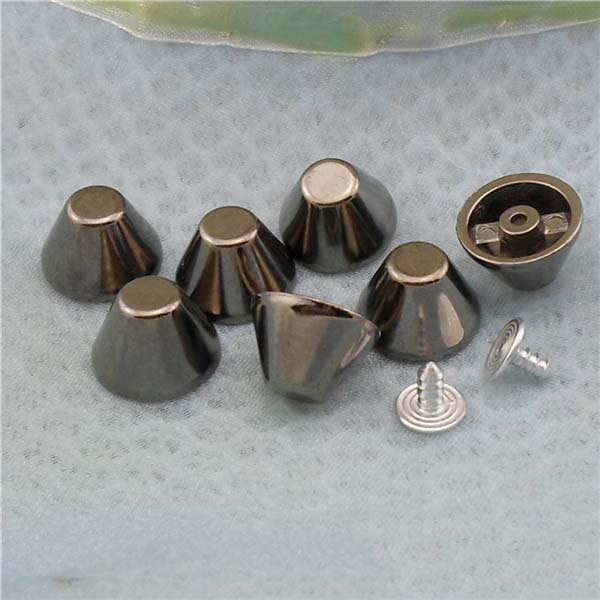 We can produce top quality brass/alloy/aluminum/stainless steel spikes. We can make to custom orders with a sample photo or designing draft. We are capable of making various tree spike, cone spike, hexagon spike, claw spike, bullet spike, pyramid stud, round stud, and rivets, for all kinds of rock and punk fashion garments and jewelries, especially for studded belts, bracelets, fashion bags and shoes, leather jackets, vests, leather pants, skirts and shoes.