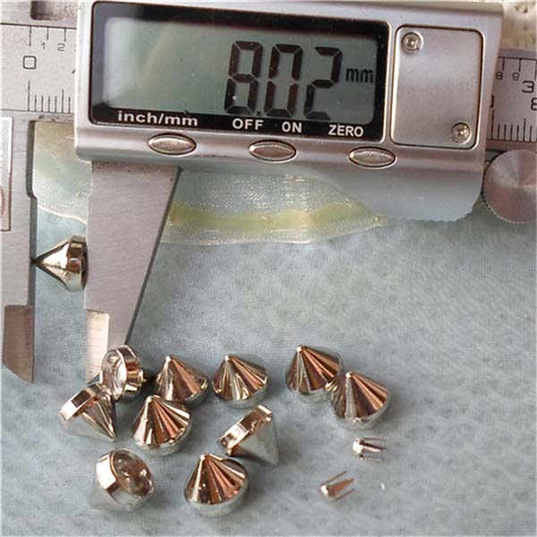 We can produce top quality brass/alloy/aluminum/stainless steel spikes. We can make to custom orders with a sample photo or designing draft. We are capable of making various tree spike, cone spike, hexagon spike, claw spike, bullet spike, pyramid stud, round stud, and rivets, for all kinds of rock and punk fashion garments and jewelries, especially for studded belts, bracelets, fashion bags and shoes, leather jackets, vests, leather pants, skirts and shoes.