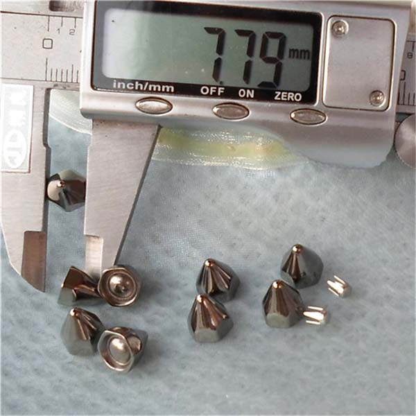 We can produce top quality brass/alloy/aluminum/stainless steel spikes. We can make to custom orders with a sample photo or designing draft. We are capable of making various tree spike, cone spike, hexagon spike, claw spike, bullet spike, pyramid stud, round stud, and rivets, for all kinds of rock and punk fashion garments and jewelries, especially for studded belts, bracelets, fashion bags and shoes, leather jackets, vests, leather pants, skirts and shoes.