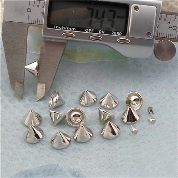 We can produce top quality brass/alloy/aluminum/stainless steel spikes. We can make to custom orders with a sample photo or designing draft. We are capable of making various tree spike, cone spike, hexagon spike, claw spike, bullet spike, pyramid stud, round stud, and rivets, for all kinds of rock and punk fashion garments and jewelries, especially for studded belts, bracelets, fashion bags and shoes, leather jackets, vests, leather pants, skirts and shoes.