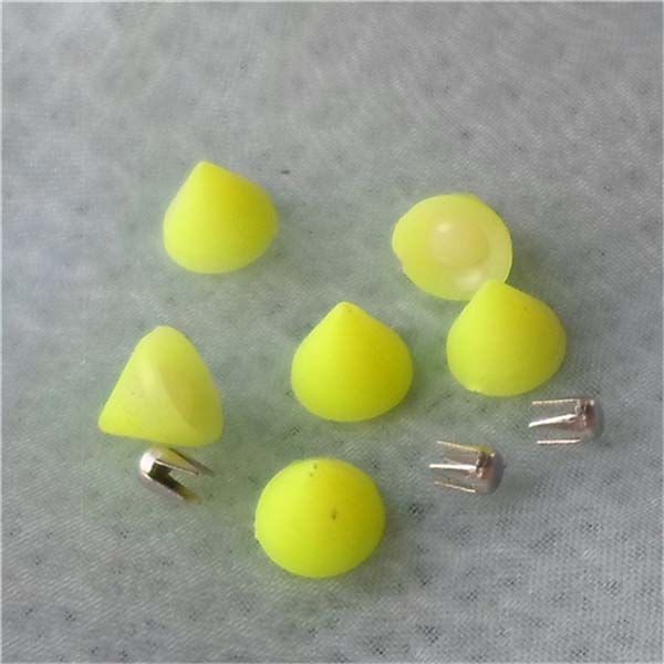 You can get various color spikes,studs,rivets and glow in dark spikes,studs,rivets ; plating: silver, gold, brass, antique brass, gun metal black, matte black, white, red, pink, purple, blue, green, fluorescent green/yellow/orange,glow in dark green/yellow/white/pink/orange/blue, etc.