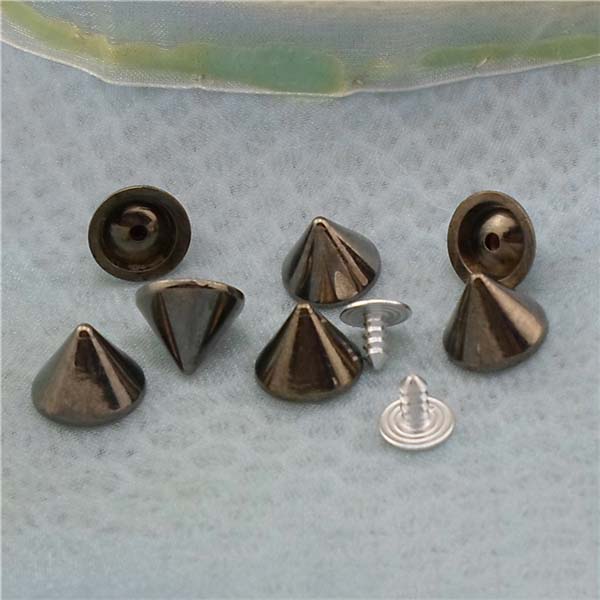 We can produce top quality brass/alloy/aluminum/stainless steel spikes. We can make to custom orders with a sample photo or designing draft. We are capable of making various tree spike, cone spike, hexagon spike, claw spike, bullet spike, pyramid stud, round stud, and rivets, for all kinds of rock and punk fashion garments and jewelries, especially for studded belts, bracelets, fashion bags and shoes, leather jackets, vests, leather pants, skirts and shoes.