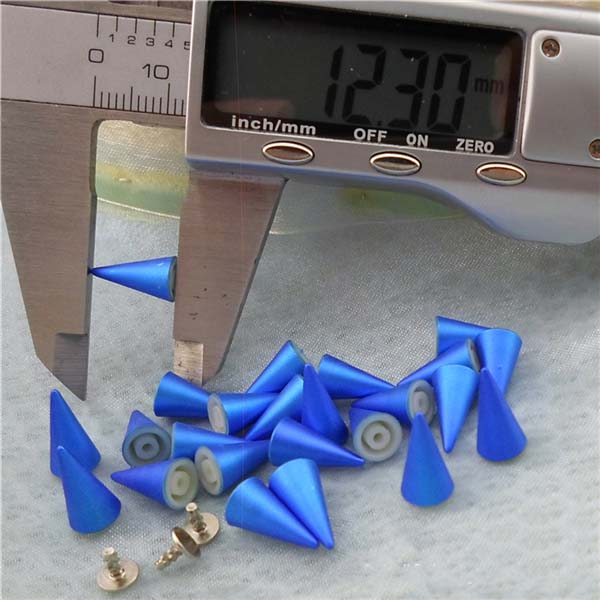 We can produce top quality brass/alloy/aluminum/stainless steel spikes. We can make to custom orders with a sample photo or designing draft. We are capable of making various tree spike, cone spike, hexagon spike, claw spike, bullet spike, pyramid stud, round stud, and rivets, for all kinds of rock and punk fashion garments and jewelries, especially for studded belts, bracelets, fashion bags and shoes, leather jackets, vests, leather pants, skirts and shoes.