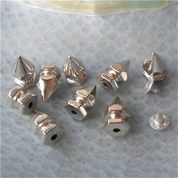 We can produce top quality brass/alloy/aluminum/stainless steel spikes. We can make to custom orders with a sample photo or designing draft. We are capable of making various tree spike, cone spike, hexagon spike, claw spike, bullet spike, pyramid stud, round stud, and rivets, for all kinds of rock and punk fashion garments and jewelries, especially for studded belts, bracelets, fashion bags and shoes, leather jackets, vests, leather pants, skirts and shoes.