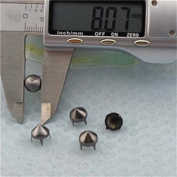We can produce top quality brass/alloy/aluminum/stainless steel spikes. We can make to custom orders with a sample photo or designing draft. We are capable of making various tree spike, cone spike, hexagon spike, claw spike, bullet spike, pyramid stud, round stud, and rivets, for all kinds of rock and punk fashion garments and jewelries, especially for studded belts, bracelets, fashion bags and shoes, leather jackets, vests, leather pants, skirts and shoes.